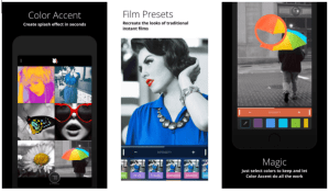 فضلًا عن دعمه لتغيير اللون الحقيقي بألوان أخرى حسب ما تراه مناسب، وهناك أدوات تشبّع اللون وأدوات تحرير رئيسية أخرى، علاوةً على مجموعة أخرى من الفلاتر والإعدادات المسبقة، أخيرًا وللأسف تطبيق Color Accent غير مجاني وهو متاح بسعر 0.99$، على ان يدعم iOS 0.9 فأحدث.