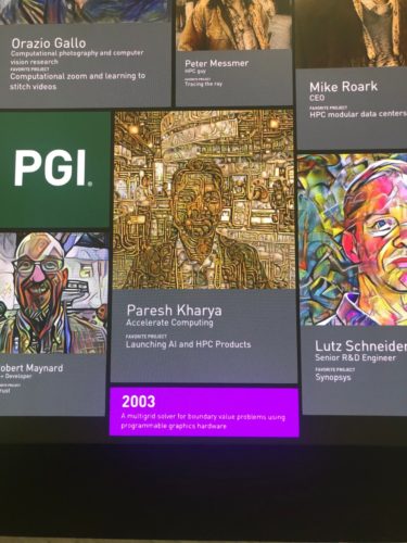 Behind him flashed an image of Jensen Huang, rendered as if painted by Cezanne. Alongside him was John Stone, the legendary HPC researcher at the University of Illinois, as if painted by Vincent Van Gogh. Close by were Erik Lindahl, who heads the international GROMACS molecular simulation project, right out of a Joan Miró painting. Paresh Kharya, a data center specialist at NVIDIA, looked like an abstracted sepia-tone circuit board.